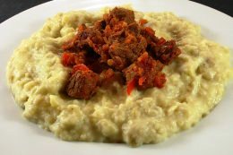 Bir tencerede çok ince küp doğranmış soğan sıvı yağ ile kavrulur. Etler ilave edilerek bir süre daha kavurmaya devam edilir. salça ekleyerek bir süre daha kavuralım.Tuz ve karabiberle tatlandırılarak et hizasına gelecek kadar sıcak su ilavesi yapılır. Etler iyice yumuşayıncaya dek ağır ateşte pişirilir.